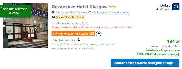 Inną opcją pozostaje wylot dzień wcześniej – 28 listopada. Z Krakowa do Glasgow dostaniemy się za 111 zł REZERWUJ====>.