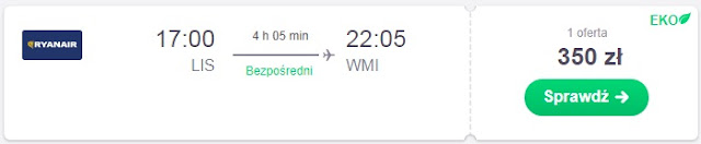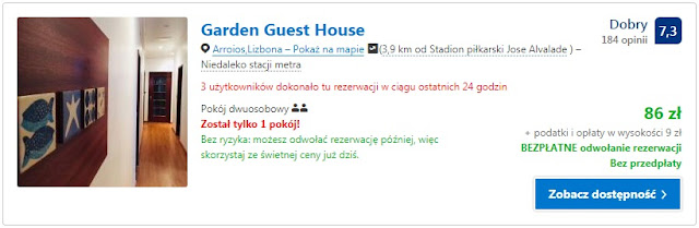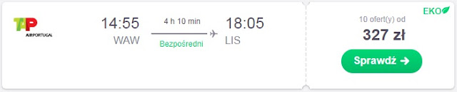 Inna opcja to przelot dzień przed meczem 13.02, wówczas do Lizbony dostaniemy się bezpośrednim lotem z Warszawy za 327 zł REZERWUJ====>