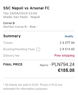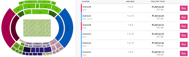 Wejściówki na to spotkanie nabędziemy za pośrednictwem rynku wtórnego. Za kupno jednego/dwóch biletów zapłacimy 92,54 EUR/185,08 EUR (ok. 397 zł/794 zł) REZERWUJ====>.