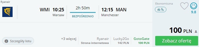 Bezpośrednio do Manchesteru możemy dolecieć w dniu meczu z Krakowa za 182 zł REZERWUJ ==== > lub Warszawy za 100 zł REZERWUJ ==== >