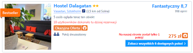 Nocleg w Sztokholmie proponujemy w Hostelu Dalagatan za 275 zł (cena za osobę za noc ok 140 zł) zarezerwuj TUTAJ====>.