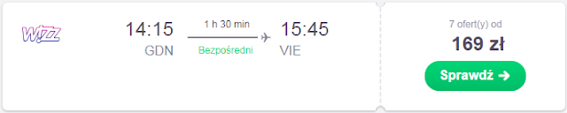 Druga propozycja transportu to transport składany (lotniczy+lądowy). Wylatujemy z Gdańska do Wiednia dzień przed meczem 20.07 za 169 zł (124 zł w przypadku klubowiczów WIZZ Discount) REZERWUJ====>