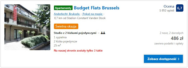Najlepszą bazą noclegową będzie apartament Budget Flats Brussels położony tuż niedaleko stadionu, za który zapłacimy 486 zł (122 zł/os/noc).