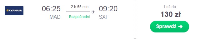 Powrót planujemy dzień po meczu z Madrytu do Berlina za 130 zł REZERWUJ ==== >, lub do Warszawy za 177 zł REZERWUJ ==== >