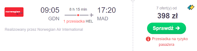 Lot powrotny warto zarezerwować na 25 listopada. Z Madrytu do Warszawy Modlin dotrzemy za 298 zł REZERWUJ====>. Alternatywą jest połączenie do Gdańska (z przesiadką w Hamburgu) za 323 zł* (cena regularna 366 zł) REZERWUJ====> oraz Poznania (z przesiadką w Londyn Stansted) za 234 zł REZERWUJ====>.