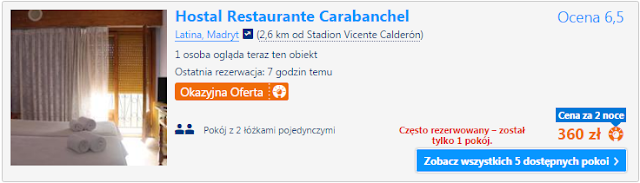 Hostal Restaurante Carabanchel 2,6 km od stadionu Estadio Vicente Calderón od 360 zł za pokój dwuosobowy (ok. 90 zł za osobę za noc) zarezerwuj TUTAJ====>
