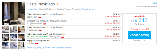 Hostal Noviciado 3,9 km od stadionu Estadio Vicente Calderón w bardzo dobrym standardzie od 343 zł za pokój dwuosobowy (ok. 86 zł za osobę za noc) zarezerwuj TUTAJ====>