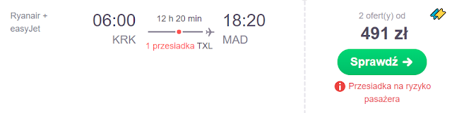 Doradzamy wylot dzień przed spotkaniem – 26 kwietnia. Za lot z Krakowa (z przesiadką w Berlinie) zapłacimy 491 zł REZERWUJ====>.