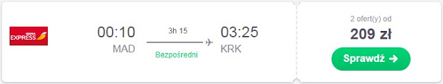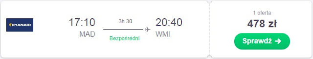Powrót do kraju proponujemy dzień po rozegranym meczu 02.09, wówczas bezpośrednio z Madrytu dostaniemy się do Krakowa za 209 zł REZERWUJ====> oraz Warszawy-Modlin za 478 zł REZERWUJ====>
