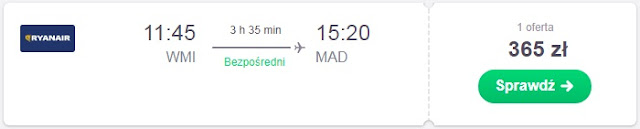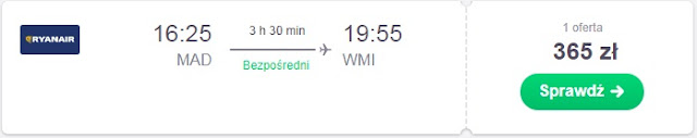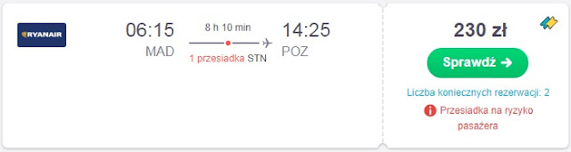 Inne opcje to bezpośredni lot z Madrytu do Warszawy za 365 zł REZERWUJ====> oraz lot do Gdańska z przesiadką w Luton za 295 zł REZERWUJ====>