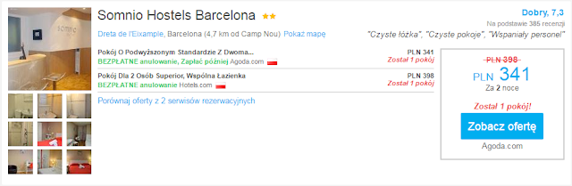 Dwa dni w Barcelonie proponujemy spędzić w jednym z niżej wymienionych hosteli, które znajdują się w niedalekiej odległości od Camp Nou. Cena za pokój dwuosobowy zaczyna się od 341 zł za 2 noclegi (ok. 85 zł za osobę za noc).