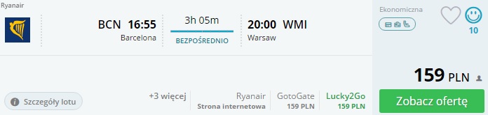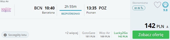 Powrót planujemy dzień po meczu bezpośrednim lotami z Barcelony do Warszawy za 159 zł REZERWUJ ==== >, do Katowic za 109 zł* (cena regularna 142 zł) REZERWUJ ==== >, lub Poznania za 109 zł* (cena regularna 142 zł) REZERWUJ ==== >