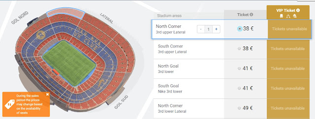 Wejściówki dostępne są za pośrednictwem oficjalnej strony internetowej FC Barcelony. Najtańsze z nich to koszt (wraz z opłatami) 40,5 EUR (ok. 174 zł) REZERWUJ====>