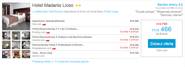 Proponujemy nocleg w pobliżu Camp Nou. Koszt pokoju dwuosobowego w komfortowych warunkach na 2 noce to ok 460 zł ( ok 115 zł za osobę za noc) zarezerwuj TUTAJ====>