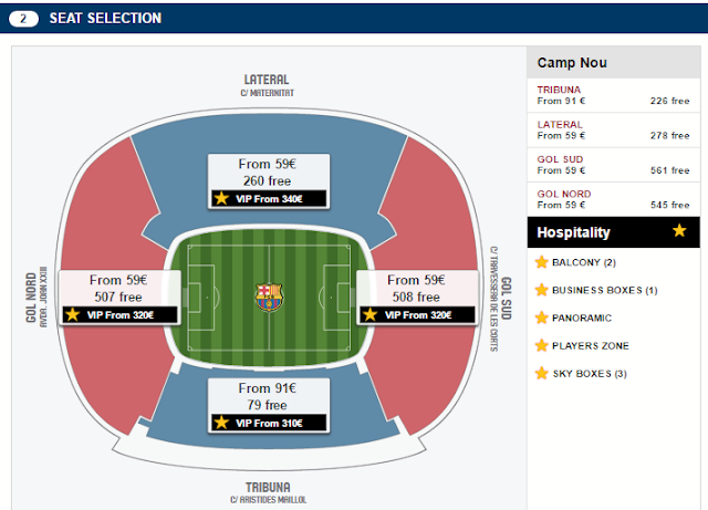 Bilety dostępne są na oficjalnej stornie FC Barcelony: http://fcbarcelona.entradas.com/sports-web/FC_Barcelona/Futbol/2016-2017/LALIGA_2016-2017/FC_BARCELONA_-_RCD_ESPANYOL/. Najtańsze bilety kosztują 59EUR (ok. 260 zł)
