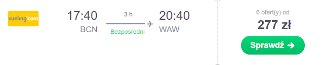 Powrót można zaplanować na 9 grudnia. Za połączenie z Barcelony do Katowic zapłacimy 150 zł* (cena regularna 192 zł) REZERWUJ====>, Krakowa 258 zł REZERWUJ====>, Gdańska 259 zł* (cena regularna 282 zł) REZERWUJ====> i Warszawy 277 zł REZERWUJ====>.