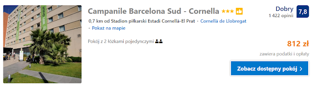 Alternatywą może być Campanile Barcelona Sud – Cornella. Koszt dwudniowego pobytu dla dwóch osób wynosi 882 zł* (220,5 zł os./noc).