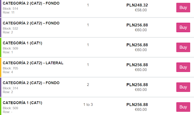 Zalecamy skorzystanie z rynku wtórnego. Ceny najtańszych biletów warte są 68,44 EUR (ok. 294 zł) REZERWUJ====>.
