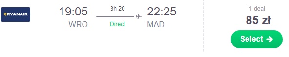 Lot powrotny proponujemy zarezerwować dzień po meczu z Madrytu do Warszawy za 277 zł REZERWUJ ==== >, lub z Madrytu do Poznania za 183 zł REZERWUJ ==== >. Istnieje możliwość lotów łączonych z Madrytu do Birmingham za 84 zł REZERWUJ ==== > a następnie z Birmingham do Wrocławia za 93 zł* (cena regularna 128 zł) REZERWUJ ==== >