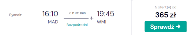 Stolicę Hiszpanii opuszczamy 17 lutego wylatując do Warszawy Modlin za 365 zł REZERWUJ====>.