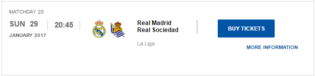 W przypadku Realu Madryt oficjalna sprzedaż dla spotkań La Liga rusza mniej więcej 2 tygodnie przed zdarzeniem. Istnieje zatem szansa rezerwacji biletu w jeszcze niższej cenie, zwykle ceny biletów ligowych  zaczynają się od ok. 40 EUR. Można zatem zarezerwować loty a później wyczekiwać na generalną sprzedaż na stronie klubowej Realu Madryt.