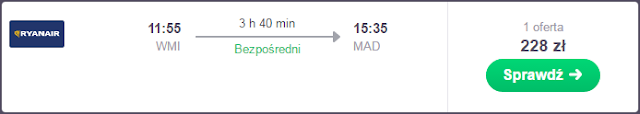 Jako alternatywę proponujemy wylot w dniu meczu 29.01.2017 z Warszawy do Madrytu za 228 zł zarezerwuj TUTAJ====>