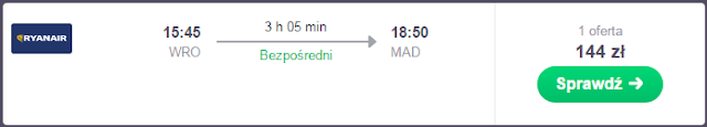 Alternatywnie proponujemy powrót dwa dni po meczu 31.01.2017 z Madrytu do Wrocławia za 119 zł zarezerwuj TUTAJ====>  lub Krakowa za 151 zł  zarezerwuj TUTAJ====>