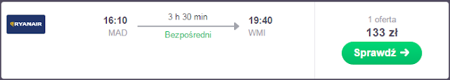 Proponujemy powrót dzień po meczu 30.01.2017 z Madrytu do Warszawy Modlin za 133 zł zarezerwuj TUTAJ====>