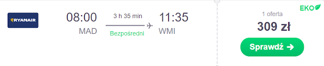 Powrót warto zaplanować na 4 listopada. Lot z Madrytu do Warszawy Modlin kosztuje 309 zł REZERWUJ====>