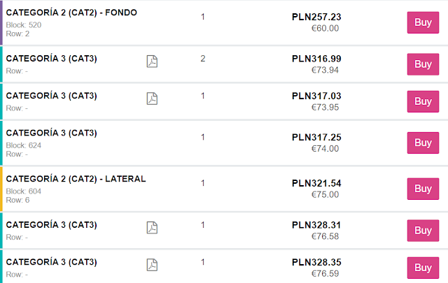 Bilety możemy nabyć za pośrednictwem rynku wtórnego. Koszt najtańszych wejściówek wynosi 70,80 EUR (ok. 304 zł) REZERWUJ====>.