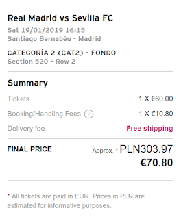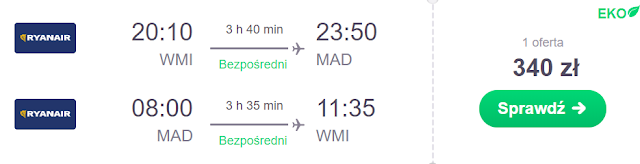 Wylot na mecz proponujemy dzień przed meczem – 18 stycznia, natomiast powrót na 20 stycznia. Za bezpośredni lot z Warszawy Modlin do Madrytu wraz z powrotem zapłacimy łącznie 340 zł REZERWUJ====>.