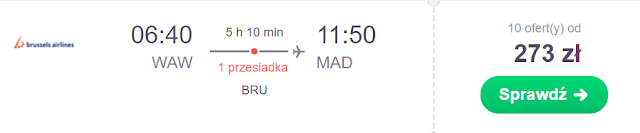 Innym rozwiązaniem jest lot 1 grudnia. Z Warszawy do Madrytu dolecimy kolejno za 258 zł (z przesiadką w Berlin Tegel) REZERWUJ====> i za 273 zł (z przesiadką w Brukseli) REZERWUJ====>.