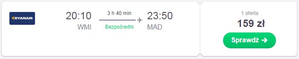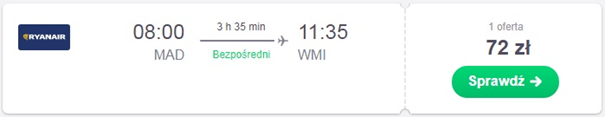 Podróż do Polski planowany jest 14.01, czyli dzień po spotkaniu. Za bilety z Madrytu do Warszawy zapłacimy w tym przypadku 72 zł. REZERWUJ====>