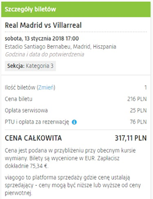Warto pamiętać, że bilety w najbliższym czasie będą  dostępne za pośrednictwem oficjalnej strony internetowej klubu – https://www.realmadrid.com/en/tickets. Zwykle ceny biletów na mecze z rywalami ligowymi podobnymi do Villareal zaczynają się od ok 45 EUR (ok. 194 zł)Obecnie wejściówki dostępne są na rynku wtórnym, najtańsze dostępne bilety można dostać od około 318 zł. Zakupione wejściówki otrzymamy w formie elektronicznej. REZERWUJ====>