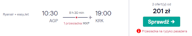 Powrót planujemy na dwa dni po meczu, to jest wtorek 3 grudnia. Z lotniska w Maladze stosunkowo tanio możemy dostać się do Krakowa z przesiadką w Mediolanie za 201 zł lub bezpośrednio ale za to drożej bo za 526 zł REZERWUJ====>. Do Warszawy również z Malagi dotrzemy za 271 zł REZERWUJ====>.