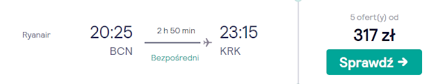 Hiszpanię opuszczamy 26 stycznia z lotniska w Barcelonie, z której wrócimy do Warszawy za 249 zł* (cena regularna 279 zł) REZERWUJ====> oraz Krakowa za 317 zł REZERWUJ====>.