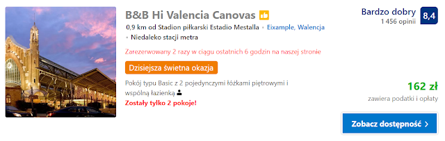 Inną opcją może być B&B Hi Valencia Canovas. Tutaj za nocleg dla jednej osoby zapłacimy od 202 zł.