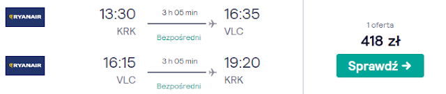 Proponujemy wylot do Walencji w terminie 28 listopada – 1 grudnia (czwartek – niedziela) z Krakowa za 418 zł REZERWUJ====> lub w dniach 28 listopada – 2 grudzień (czwartek – poniedziałek) z Warszawy za 376 zł REZERWUJ====>.