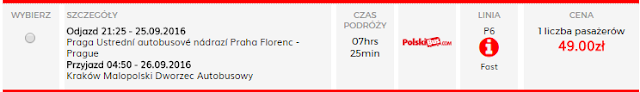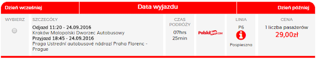 Z Pragi wracamy w dniu spotkania 25.09 wieczorem. Za kurs do Krakowa zapłacimy 49 zł zarezerwuj TUTAJ=====>. Polskim Busem możemy również wrócić do Krakowa za 59 zł, oraz FlixBusem do Wrocławia za 65 zł zarezerwuj TUTAJ=====>