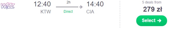 Powrót planujemy dzień po meczu z Rzymu do Warszawy za 177 zł REZERWUJ ==== >, lub do Krakowa za 265 zł REZERWUJ ==== >. Do Gdańska, Wrocławia oraz Katowic dostaniemy się lotami łączonymi z Rzymu do Eindhoven za 177 zł REZERWUJ ==== >, a następnie z Eindhoven do Gdańska za 149 zł* (cena regularna za 190 zł) REZERWUJ ==== >, z Eindhoven do Katowic za 149 zł* (cena regularna 190 zł) REZERWUJ ==== >, lub z Eindhoven do Wrocławia za 190 zł* (cena regularna 233 zł) REZERWUJ ==== >