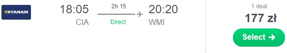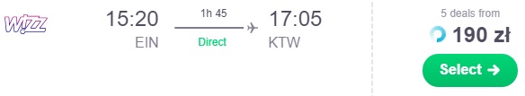 Proponujemy wylot w dniu meczu z Warszawy za 144 zł * (cena regularna 189 zł) REZERWUJ ==== >. Dzień przed meczem możemy skorzystać z lotu z Katowic za 234 zł * (cena regularna 279 zł) REZERWUJ ==== >.