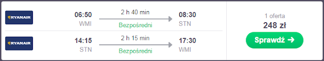 Do Londynu lecimy w dniu meczu (23.02), wracamy następnego dnia (24.02). Za przelot w 2 strony z Gdańska linią Ryanair zapłacimy 238 zł zarezerwuj TUTAJ====> . Tą samą linią z Modlina przelot kosztuje 247,10 zł zarezerwuj TUTAJ====>