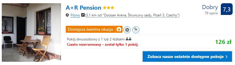 Proponujemy nocleg w dwóch miejscach oddalonych nieznacznie od stadionu. Pierwszym jest A+R Pension gdzie za noc w pokoju dwuosobowym zapłacimy 126 zł ( 63 zł os./noc) drugim zaś Euro Hostel, w którym za noc w pokoju rodzinnym zapłacimy 145 zł ( ok. 73 zł os./noc- w cenę wliczony podatek miejski 0,25€ os./noc).