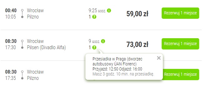 Do Pilzna najtaniej w tym terminie dojedziemy autobusami Flixbus. Z Warszawy wyruszamy dzień przed meczem za 74 zł (z przesiadką w Pradze) REZERWUJ ==== >, lub z Gdańska również dzień przez meczem za 99 zł( przesiadka w Pradze) REZERWUJ ==== >. W dniu meczu możemy skorzystać z opcji wyjazdu z Wrocławia za 59 lub 73 zł(przesiadka w Pradze) REZERWUJ ==== > lub z Poznania za 98 zł(przesiadka w Pradze) REZERWUJ ==== >