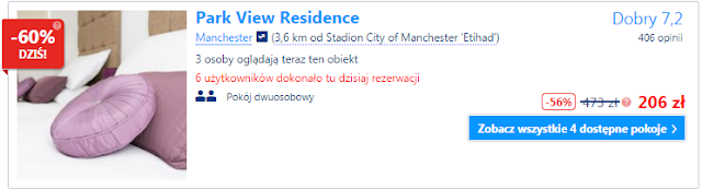 Proponujemy spędzenie nocy w Park Viem Residence. Pokój dwuosobowy w pobliżu Etihad Stadium (3,6 km) dostaniemu już od 206 zł (ok 103 zł za osobe za noc) zarezerwuj TUTAJ====>