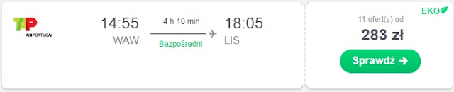 Powrót do kraju proponujemy dzień po rozegranym meczu 26.02, bezpośrednimi lotami z Lizbony dostaniemy się wówczas do Wrocławia za 143 zł REZERWUJ====> oraz do Warszawy za 474 zł REZERWUJ====>