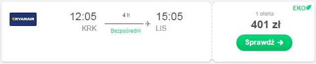 Wylot do stolicy Portugalii proponujemy jeszcze w dniu meczu 25.02, bezpośrednimi połączeniami możemy wówczas zabrać się z Warszawy za 283 zł REZERWUJ====> lub z Krakowa za 401 zł REZERWUJ====>