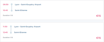 Z lotniska w Lyonie do Saint-Etienne dotrzemy dzięki francuskiemu przewoźnikowi kolejowemu Ouibus, a za bilety w dwie strony zapłacimy 30 Euro (ok. 135 zł) REZERWUJ====>.