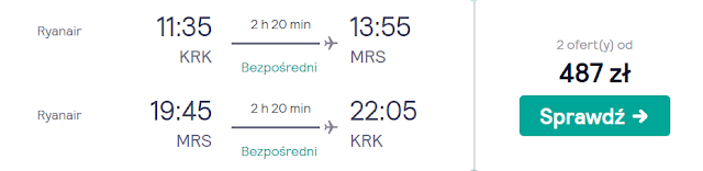 Do Marsylii wylatujemy z Krakowa 6 marca. Za lot w raz powrotem, który rezerwujemy na 9 marca zapłacimy 487 zł REZERWUJ====>.