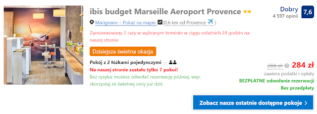 Proponujemy oddalony o 600 metrów od lotniska w Marsylii ibis budget Marseille Aeroport Provence, w którym koszt noclegu w pokoju dwuosobowym wynosi 288 zł* (144 zł os./noc).